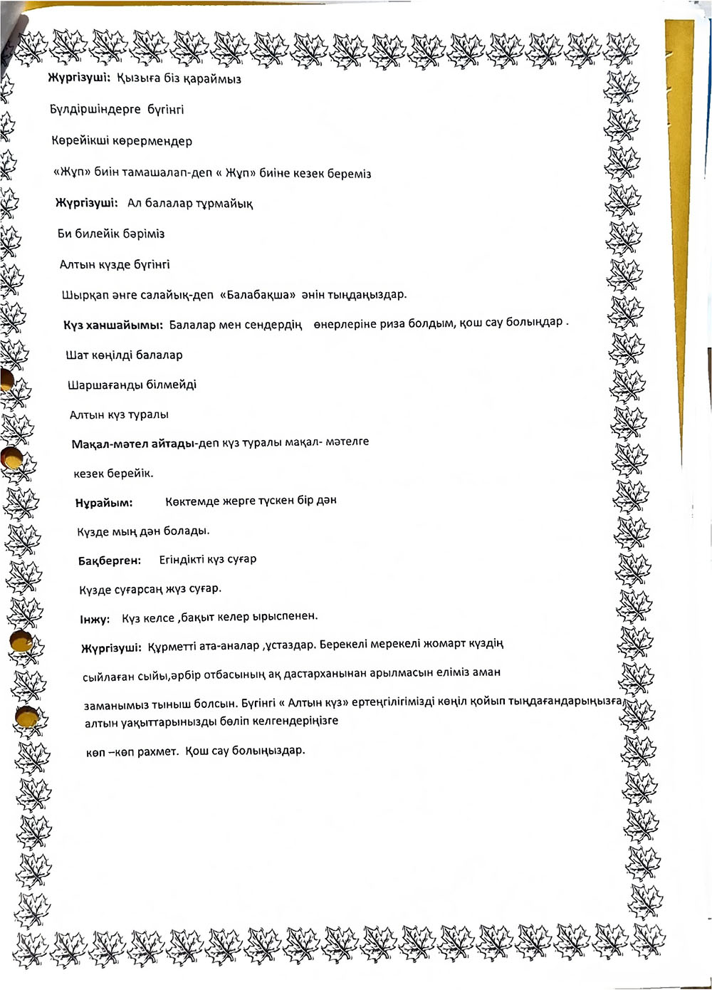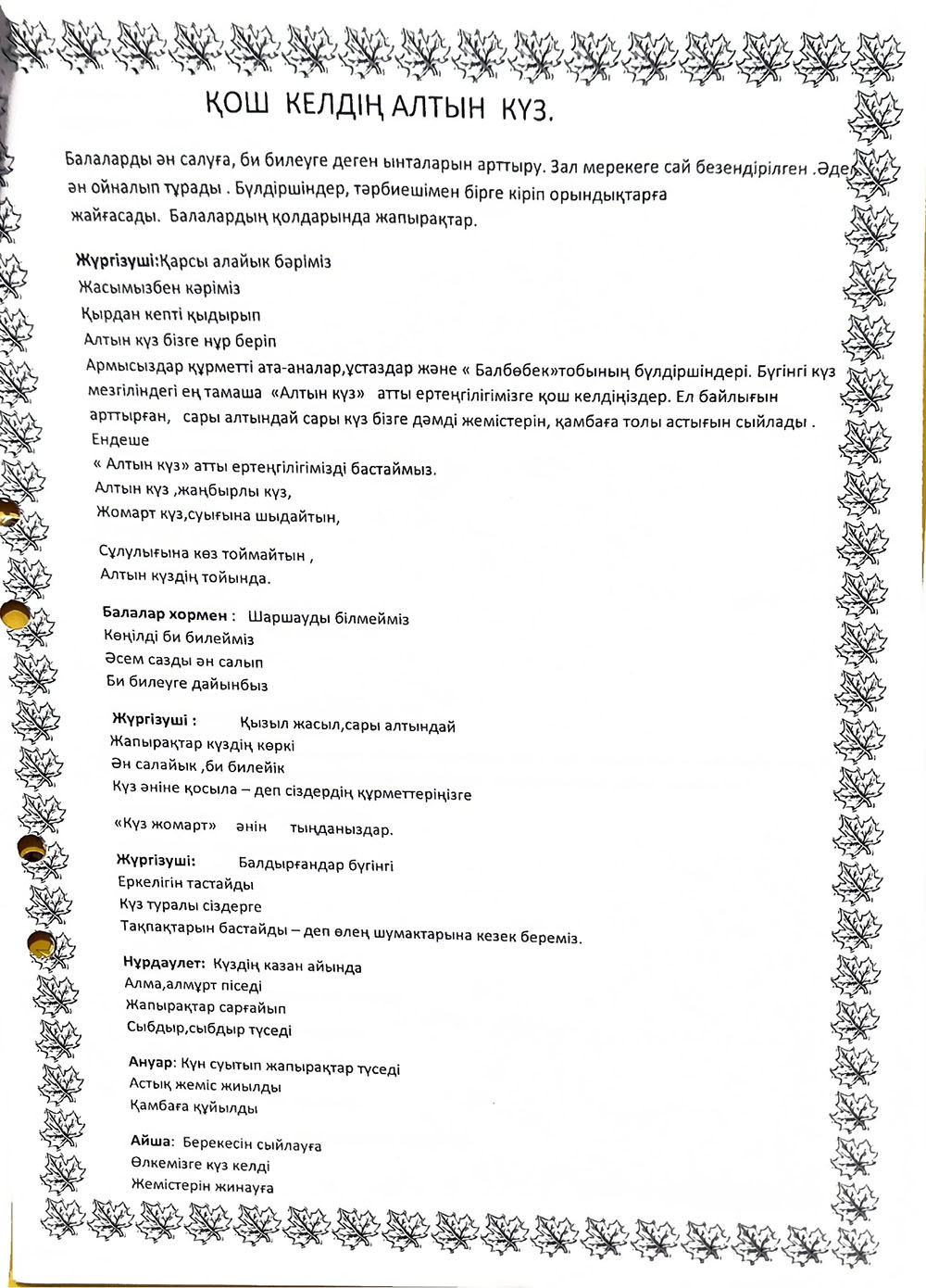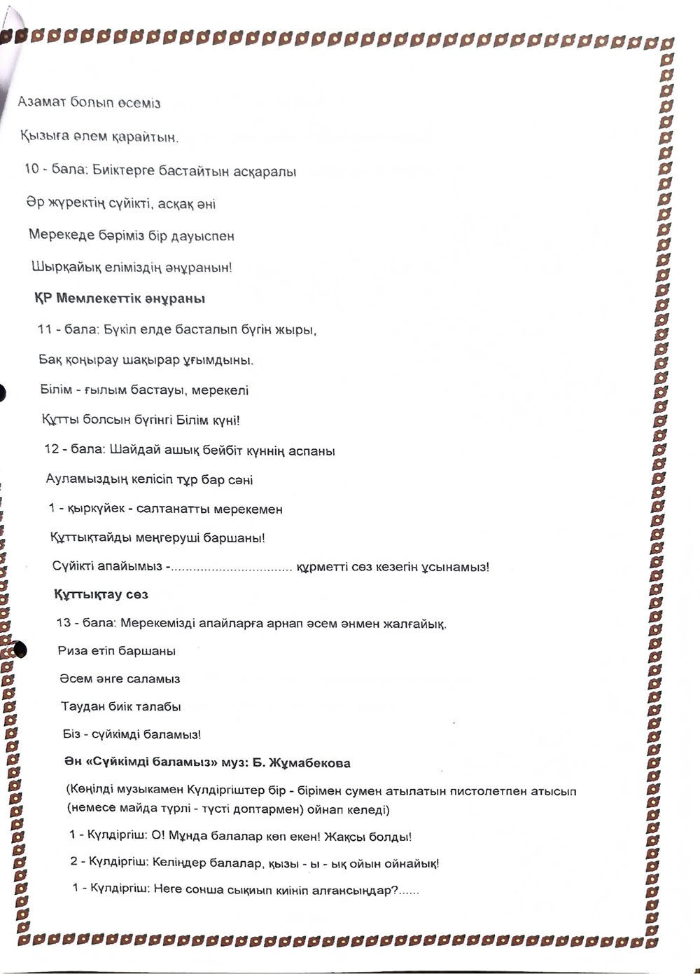 БАЛАЛАРДЫҢ АС МӘЗІРІ
